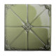 Schöne salbeigrüne glänzende Keramikfliese mit floralem Zentrum und Ecken.