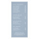 Elégant salon de beauté menu / liste de prix carte à crémaillère avec une guirlande fleurie composée de roses rose pastel et mauve en haut. Vos services sont dans un gris moyen avec votre nom d'entreprise dans une police de script. Le dos est bleu poussiéreux et peut être changé en n'importe quelle couleur. Chaque côté comporte quatre sections préfaites et vos informations d'affaires sont au bas de l'arrière-plan. Ce design floral est idéal pour un salon de beauté, de coiffure ou de clous.
