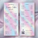 Design de carte à crémaillère tendance Business Price List avec effet holographique arrière - plan, polices de script modernes et disposition élégante. Ce menu de services entièrement modifiable comprend de l'espace pour votre nom d'entreprise ou logo, la liste des services et les coordonnées de prix et le code QR numérisable. Cette liste de prix est parfaite pour votre salon de beauté, studio de maquillage, spa à ongles, boutique cheveux et plus encore!