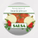 Eine grafische Darstellung von Tomaten, Zwiebeln, heißen Paprikaschoten und Ciclantro auf einem Aufkleber für das Konservenetikett. Der Aufkleber enthält Vorlagen für Ihre Personalisierung. ©2013charmainepaulson