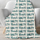 Whether you're salty from the sea breeze, or full of salty attitude, this graphic print 'Salty Beach' throw blanket is a great way to show off your love for the coast and bring the ocean into your home decor. Coastal teal blue lightly distressed vintage and modern fonts create a playful pattern set on the white sand fleece. Perfect for beach houses, surf shacks, and coastal condos. | Matching throw pillow available in store.
