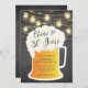 Invitation à 30 ans avec une tasse de bière sur un arrière - plan populaire en tableau noir avec des lumières de mât suspendues