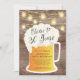 Invitation à 30 ans avec une tasse de bière sur un arrière - plan en bois rustique avec des lumières de mât suspendues