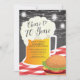 Salutations à 70 ans invitation barbecue avec une tasse de bière & burger ensemble sur un arrière - plan noir en tableau noir avec lumières de mâchoire suspendu
