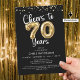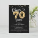 Bravo à 70 ans Ballons Confetti Invitation. Célébrez un 70e anniversaire avec ces invitations de fête élégantes et festives avec le titre CHEERS TO 70 YEARS avec des numéros de ballon en or métallique et typographie de script moderne et confetti dans votre choix de couleur arrière - plan (montré en noir). ASSISTANCE : Pour obtenir de l'aide sur la modification ou la personnalisation de la conception, le transfert de la conception à un autre produit ou si vous souhaitez coordonner des éléments, contactez le concepteur AVANT de commander par Zazzle Conversation ou par courriel makeitaboutyoustore@gmail.com.