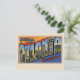 Cette reproduction de carte postale vintage présente de grandes lettres remplies d'images emblématiques d'Atlanta