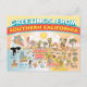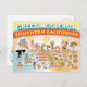 Une carte de voeux lumineuse et charmante montre une caricature fantaisiste de la Californie du Sud - les personnages mignons profitent du soleil chaud de la Californie qui brille au-dessus de tout.
