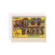 Cette reproduction de carte postale vintage présente de grandes lettres remplies d'images emblématiques des Big Trees de Santa Cruz