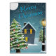 Noël Salutations avec arbres, neige, maison et lampadaire