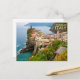 Carte postale de salutations panoramiques d'Italie mettant en vedette les falaises uniques de Cinque Terre.