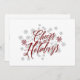 Partagez vos souhaits de vacances avec cette carte "Cheers to Holidays"! Conçu avec une calligraphie élégante et des détails subtils de flocon de neige et d'étoiles en rouge, blanc et argent, cette carte apporte une touche sophistiquée à vos salutations de vacances. Parfait pour envoyer de la joie à des amis, à la famille ou à des collègues.