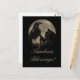 Der gesegnete Samhain! Ein heidnischer, wicca keltischer Urlaub. Diese magische Karte zeigt einen schönen Rabe und zwei schwarze Katzen mit einem großen Herbstmond.