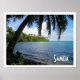 Fotografieren Sie den Pazifischen Ozean von der samoanischen Küste gerahmt von einer schlanken Palme. Anpassbarer Text, "Samoa".