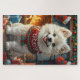 Samoyed Dog mit Weihnachtsgeschenke Kamin