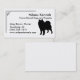 Eine einfache schwarz-weiße Visitenkarte mit Silhouette eines Samoyed mit geometrischem Muster in der Ecke.