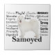 Diese Samoyed Fliese mit den Eigenschaften und der Persönlichkeit der Rasse ist ein großartiges Geschenk für jeden Samoyed Liebhaber. Fügen Sie es zu einem unserer Schachteln oder Rahmen für ein besonderes Geschenk, oder verwenden Sie es einfach als Untersetzer.
