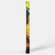 Das Bild ist ein nahes Bild einer farbenfrohen Decke mit goldenen Akzenten. Es zeichnet sich durch ein abstraktes und farbenfrohes Design aus.
