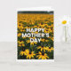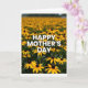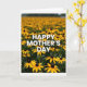 Entworfen mit einem schwungvollen Feld aus gelben, gänseblümchenartigen Blüten erstreckt sich die Szene in die Ferne, wobei tiefgrüne Blätter die Zwischenräume zwischen den Blüten füllen. Im Vordergrund zeigen mehrere Blüten weiche Blütenblätter, die von dunklen, kegelförmigen Zentren ausstrahlen, wie kleine Sonnen, die sich in einer freundlichen Gruppe nahe beieinander neigen 🌼. Weiter hinten verschwimmen die Blüten zu einem nebligen Hintergrund und verleihen dem Blick eine sanfte, traumhafte Tiefe. Zentriert über den Blüten steht die Botschaft „HAPPY MOTHER'S DAY“ in großen weißen serifenlosen Buchstaben, die sich deutlich von den Grün- und Gelbtönen abheben ❤️. Der Text befindet sich mittig im Bild, gleichmäßig verteilt und leicht lesbar, ohne die Hauptblüten im Vordergrund zu verdecken. Das Licht wirkt natürlich und diffus, lässt die gelben Blütenblätter le