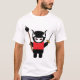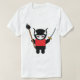 Eine Katze, die als Samurai verkleidet ist, mit einer treuen Maus und Schwert auf einem Hemd