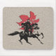 Samuraikrieger auf einem Pferd mit dem japanischen Kanji (Symbol) für Samurai hinter ihm
