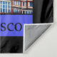 Tapestry in einer Illustration der Stadt San Francisco, in hellen Primärfarben gepaart mit Schwarz-Weiß-Kunst