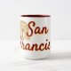 Eine schöne Kaffeemaschine mit einer der berühmten San Francisco Sehenswürdigkeiten, der Palace of Fine Art, mit dem Namen San Francisco in Braun- und Orangetönen, perfekt für Souvenir, Geschenke und vieles mehr.