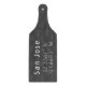 Glastafel im Paddelstil mit den Koordinaten der Breiten- und Längenkarte San José California im modernen urbanen Schriftart auf dunkelgrauem Hintergrund