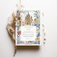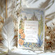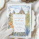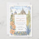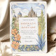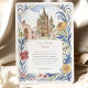 Mit dieser bezaubernden Wasserfarbenhochzeitseinladung laden Sie Ihre Gäste zu einem zauberhaften Fest ein, das den lebendigen Geist von San Miguel de Allende, Mexiko, einfängt. Das Kunstwerk zeigt wunderschön den atemberaubenden Parroquia de San Miguel Arcángel mit seinen rosa- und terrakotta-gotischen Spitzen, flankiert von charmanten Gebäude im Kolonialstil in warmen Farbtönen Gelb, Orange, Terrakotta und weichen Zierpinken, die charakteristische gewölbte Türen und Balkone aufweisen. Weiche grüne Kakteen, stilisierte Bäume mit Grün, Lavendel und hellblaugrünem Blattwerk sowie zarte grüne Büsche tragen zur malerischen Szene bei. Stilisierte, goldgelbe, getippte Blattfäden bilden den Rahmen. In einem sanften, romantischen Aquarell-Stil gelegen, ist diese Einladung ideal für eine Hochzeit in Urlaubsort in Mexiko oder für Paare, die eine lebendige Kultur und einen malerischen kolonialen Charme lieben. Die Vorderseite präsentiert elegant Ihre Hochzeitsdetails, während die Rückseite "The Finer Details" für weitere Gästeinformationen anbietet. Die Farbpalette ist eine gelungene Mischung aus warmen Terracottas, Pink, sonnigen Gelbtönen, Orangen, verschiedenen grünen Farbtönen (einschließlich Salbei und Oliven für Kakteen/Büsche, hellere Grüntöne für Bäume), Lavendel, hellblau-grün, goldgelb Akzenten, sanften Himmelsstrahlen und Cremes.