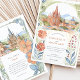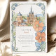 Mit dieser bezaubernden Wasserfarbenhochzeitseinladung laden Sie Ihre Gäste zu einem zauberhaften Fest ein, das den lebendigen Geist von San Miguel de Allende, Mexiko, einfängt. Das Kunstwerk zeigt wunderschön den atemberaubenden Parroquia de San Miguel Arcángel mit seinen rosa- und terrakotta-gotischen Spitzen, flankiert von charmanten Gebäude im Kolonialstil in warmen Farbtönen Gelb, Orange, Terrakotta und weichen Zierpinken, die charakteristische gewölbte Türen und Balkone aufweisen. Weiche grüne Kakteen, stilisierte Bäume mit Grün, Lavendel und hellblaugrünem Blattwerk sowie zarte grüne Büsche tragen zur malerischen Szene bei. Stilisierte, goldgelbe, getippte Blattfäden bilden den Rahmen. In einem sanften, romantischen Aquarell-Stil gelegen, ist diese Einladung ideal für eine Hochzeit in Urlaubsort in Mexiko oder für Paare, die eine lebendige Kultur und einen malerischen kolonialen Charme lieben. Die Vorderseite präsentiert elegant Ihre Hochzeitsdetails, während die Rückseite "The Finer Details" für weitere Gästeinformationen anbietet. Die Farbpalette ist eine gelungene Mischung aus warmen Terracottas, Pink, sonnigen Gelbtönen, Orangen, verschiedenen grünen Farbtönen (einschließlich Salbei und Oliven für Kakteen/Büsche, hellere Grüntöne für Bäume), Lavendel, hellblau-grün, goldgelb Akzenten, sanften Himmelsstrahlen und Cremes.