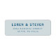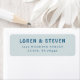 Hellblaue und aquamarine Rücksendeadressen-Aufkleber, die mit der Hochzeitskollektion San Miguel von Origami Prints koordiniert wurden.