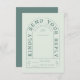 Dieses Hochzeitsdesign zeichnet sich durch gewölbte Typografie in einem funky Vintagen inspirierten Schriftart aus. Der Schriftart hat ein spielerisches und Retro-Gefühl und fügt der Einladung eine einzigartige Touch hinzu. Die Farbpalette des Designs ist ein erdgrünes Salbei und Minze, die eine stimmungsvolle und romantische Atmosphäre schaffen. Die Kombination aus der gewölbten Typografie und dem Vintagen Schriftart verleiht der Einladung ein stilvolles und einzigartiges Aussehen. Bieten Sie Ihren Gästen die Möglichkeit, online mit Ihrem eigenen QR-Code zu scannen, um mit ihren Handys auf der Rückseite dieser RSVP-Karte.