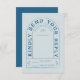 Dieses Hochzeitsdesign zeichnet sich durch gewölbte Typografie in einem funky Vintagen inspirierten Schriftart aus. Der Schriftart hat ein spielerisches und Retro-Gefühl und fügt der Einladung eine einzigartige Touch hinzu. Die Farbpalette des Designs ist reich aquamarin und hellblau und schafft eine coole und stimmungsvolle Atmosphäre. Die Kombination aus der gewölbten Typografie und dem Vintagen Schriftart verleiht der Einladung ein stilvolles und einzigartiges Aussehen. Bieten Sie Ihren Gästen die Möglichkeit, online mit Ihrem eigenen QR-Code zu scannen, um mit ihren Handys auf der Rückseite dieser RSVP-Karte.