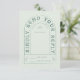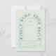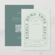 Dieses Hochzeitsdesign zeichnet sich durch gewölbte Typografie in einem funky Vintagen inspirierten Schriftart aus. Der Schriftart hat ein spielerisches und Retro-Gefühl und fügt der Einladung eine einzigartige Touch hinzu. Die Farbpalette des Designs ist ein erdgrünes Salbei und Minze, die eine stimmungsvolle und romantische Atmosphäre schaffen. Die Kombination aus der gewölbten Typografie und dem Vintagen Schriftart verleiht der Einladung ein stilvolles und einzigartiges Aussehen. Bieten Sie Ihren Gästen die Möglichkeit, online mit Ihrem eigenen QR-Code zu scannen, um mit ihren Handys auf der Rückseite dieser RSVP-Karte.