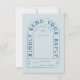 Dieses Hochzeitsdesign zeichnet sich durch gewölbte Typografie in einem funky Vintagen inspirierten Schriftart aus. Der Schriftart hat ein spielerisches und Retro-Gefühl und fügt der Einladung eine einzigartige Touch hinzu. Die Farbpalette des Designs ist reich aquamarin und hellblau und schafft eine coole und stimmungsvolle Atmosphäre. Die Kombination aus der gewölbten Typografie und dem Vintagen Schriftart verleiht der Einladung ein stilvolles und einzigartiges Aussehen. Bieten Sie Ihren Gästen die Möglichkeit, online mit Ihrem eigenen QR-Code zu scannen, um mit ihren Handys auf der Rückseite dieser RSVP-Karte.