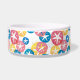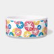 Trendy Sand Dollar Seamless Pattern in Gelb, Rot und Blau zeigt unser originelles Design von verschiedenen Größen und Farben überlappenden Sand Dollars in einem flachen grafischen Stil mit unserer Signatur Textur auf einem texturierten weißen Hintergrund.