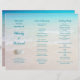 Accordion faltbare Hochzeitsprogramm Vorlage mit Strand Szene Hintergrund. Zwei Sand Dollar schmücken die Titelseite, mit Vornamen des Paares in fett aqua blau Skript. Geben Sie einen Titel und weitere Informationen über die Zeremonie ein. Zwei weitere Sektionen halten die "Reihenfolge der Zeremonie" und "Hochzeitsfeier". Der gesamte Text ist blau mit Ausnahme der Überschriften gedruckt. Reverse ist auch ein Strand-Szene mit einem Single Sand Dollar. Fold-Akkordeon-Stil nach dem Kauf - Front-Sektion faltet sich zurück und der letzte Abschnitt faltet vorwärts - um ein großes Programm zu machen, das nach außen geöffnet wird. Wählen Sie einen Papiertyp aus.