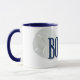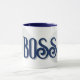 Boss Kaffee-Tasse mit weißem Sand-Dollardesign und großem, kühlen "Boss"-Text. Zeitgenössischer Stil für den ausgewählten Chef in dunkelblau und weiß. Der Text wird in zwei Ebenen erstellt, um das Aussehen eines Schattens zu geben. Zwei Dollar für weißen Sand sind der Hintergrund und dieser Stil der Tasse hatte ein dunkelblaues Interieur. Das Design funktioniert auch mit der größeren Tasse und mit anderen Farbselektionen.