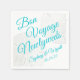 Hochzeitsempfang mit tropischem Thema oder Hochzeitsbroschüren für Hochzeitsfeiern. Sagen Sie "bon reise" zu den Neuvermählten am Morgen nach der Zeremonie und verwenden Sie Papier Servietten mit ihren Namen und Hochzeitsdatum. Große Schriftzeichen in Aquablau können auf vielen Servietten-Stilen und Größen in weiß oder ecru gedruckt werden.