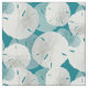 Stoff mit Sand Dollar Muster in weiß und hellblau. Der Hintergrund ist dunkel aquamarin, blau-grün und leicht zu verändern. Große und kleine Sand Dollars überlappen sich, um dieses Stranddesign zu schaffen. Wählen Sie ein beliebtes Material und Größe.