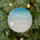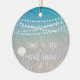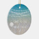 This fun beach living design Sand is the new snow ornament feature a beach scene with a seashell and string lights handing across the top. Personalize by adding a year.