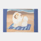 Ein hübsches Design für die Dekoration im Sommer. Kleine Chow bekommt eine Bräune am Strand mit einem glücklichen Gesichtsausdruck.