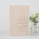 Eine schöne typografische Hochzeitsmenükarte mit Ihren Initialen in überdimensionaler Schriftzeichen oben, in Ton auf Tontönen für einen Wasserzeichen-Effekt. Personalisieren Sie Ihre Menüpunkte unten, rechts ausgerichtet. Unsere Sand-Farbtöne sind eine elegante Mischung aus Erdtönen, mit heller Creme und Terracotta-Tonbuchstaben auf sanftem beigen Hintergrund.