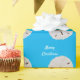 Gedruckt mit Sanddollarmustern im blauen Hintergrund mit Textvorlage für "Frohe Weihnachten"!