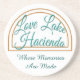 Ein dauerhafter Untersetzer mit Logo und Zeichen von Erinnerungen, die während Ihres bleibe an der Liebe Lake Hacienda gemacht wurden
