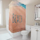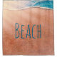 Sandstrand mit blauen Meereswellen. Küstenmeer Wassersport-Thema Bad Dusche Vorhänge. Schöne, tropisch Sommerferien Wohngestaltung. Chic, trendig, modern, elegant, cooles Reisedesign. Typografie kann individuell angepasst werden. Bildrecht Marg Seregelyi Fotografie.