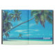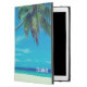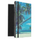Ein personalisiertes Pad-Gehäuse mit einem tropischen Foto mit Kokospalmen, das sich über einen abgelegenen weißen Sandstrand erstreckt. Türkisfarbenes Wasser und ein azurblauer Himmel im Hintergrund.