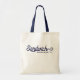 Diese Tasche enthält den Text Sandwich, Massachusetts in einem marineblauen nautischen Schriftart. Ein minimalistisches Design, das den Namen und den Staat der Stadt Cape Cod aufweist.
