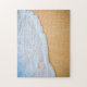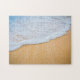 Ein Rätsel mit einem Foto eines goldbraunen Sandstrandes mit weißer, schäumender Brandung.