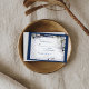Navy und weißer Sandstrand Hochzeit R.S.V.P. Karten. Fügen Sie diese schöne Strandkarte Ihren Einladungen hinzu. Navy Rahmen vorne, sandige Szene hinten.