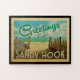 Diese Gruß von Sandy Hook Vintage Postkartengestaltung verfügt über einen Sandstrand mit einem schönen türkisfarbenen Meer und über dem Meer, einen blauen Himmel mit billigen weißen Wolken. Im Vintage Reisen Stil.